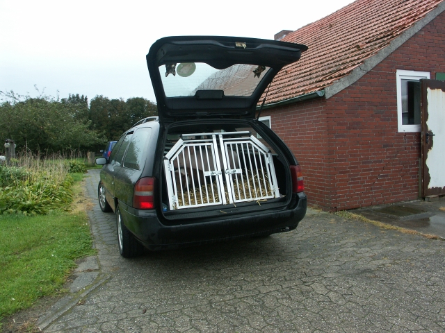 Johannes in seiner Transportkiste im Etappenziel Much.